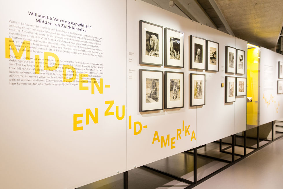 Nationaal Archief - Onderweg; met de fotograaf op reis is een tentoonstelling die duikt in het archief en laat de oorsprong van de reisfotografie zien. De basis van deze opdracht was het ontwerpen van een flexibel tentoonstellingsysteem, waarbij wij hebben gekozen voor een zwart frame systeem in combinatie met metalen platen.